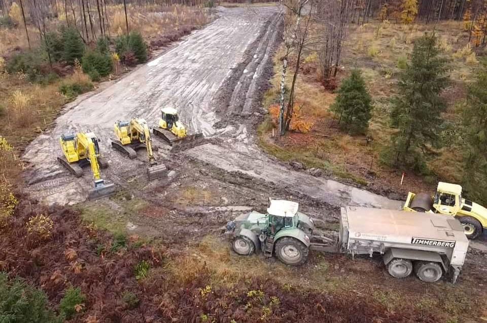 Pădurea este acum invadată de excavatoare, movile de pietriș și drumuri de construcție proaspăt pavate, care se întind pe o lățime de autostradă pentru a găzdui cele 18 turbine. Fiecare turbină va avea o înălțime de 244 de metri, mai mare decât majoritatea zgârie-norilor, iar palele rotorului se vor întinde pe lungimea unui Airbus A380.
