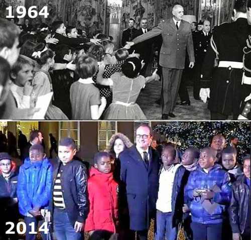 Ba, mai mult, peste trei generații, chiar în cazul opririi complete a imigrației, numai 1,7% din noii născuți nu vor avea niciun strămoș de origine străină până la gradul al cincilea. A-i considera pe acești descendenți ai imigranților, născuți din căsătorii mixte, drept străini și neeuropeni, spune Le Bras, este rasism pur și simplu. Ar fi asemănător, susține Le Bras, cu principiul „unei singure picături”, aplicat în Statele Unite în vremea segregaționismului, când un singur ascendent de origine ne-europeană îl transforma pe un individ într-un cetățean de rangul al doilea.
