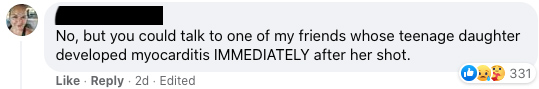 – Cineva cunoaște un adolescent care a suferit de miocardită la o zi după injecția cu a doua doză de vaccin și a fost spitalizat.