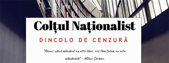 Colțul naționalist s-a născut în momentul cel mai potrivit: când lacătele încep să se închidă, când cei mai valoroși autori din țară nu-și mai pot exercita libertatea de opinie; când intelectualii sunt fugăriți din librării-impostoare, al căror nume îl uzurpă pe acela al simbolului rezistenței naționale – Mihai Eminescu, somați fiind să-și ridice lucrările; când naționaliștii sunt amenințați și persecutați la ei în țară de ONG-uri străine, finanțate din bani publici, amendați și chiar ajung să li se întocmească dosare penale pentru mărturisirea adevărului istoric, pentru iubirea de țară; când toți trădătorii au acceptat, din interes sau din frică, consensul generalizat care s-a abătut asemenea unui embargou genocid asupra mediului intelectual din România.