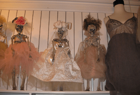 În februarie 2010, Le Bel Age Boutique, un magazin de modă din San Diego, a avut o expoziție neobișnuită: modele făcute din oase (foto 1). „Eu le numesc schelete couture” a spus Valerie Lee Ferrari, proprietarul magazinului. Ferrari a explicat că, deși motivația ei inițială a fost de a crea schelete din plastic pentru a sărbători Halloween-ul, în acest răstimp a fost influențată de mișcarea gotică și a vrut să creeze un manechin „de nișă”. Văzând că moda scheletelor a devenit atât de populară încât a ajuns să le producă și să le vândă, Ferrari a remarcat: