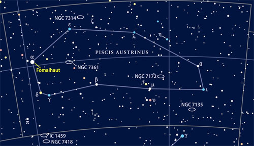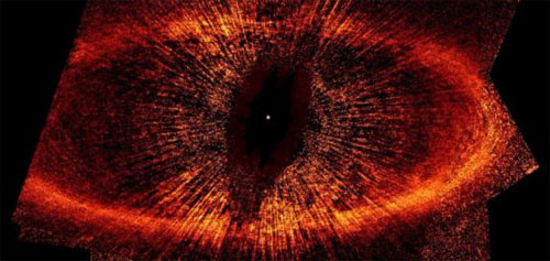 Fomalhaut se clasează pe locul 17, între cele mai strălucitoare stele de pe cerul nopții. Se află la aproximativ 25 de ani lumină de Pământ. Steaua respectivă are de două ori masa Soarelui nostru, dar este cu mult mai fierbinte și mai luminoasă. La examinarea lui Fomalhaut în spectru infraroșu, vom vedea un mare inel de praf stelar, acolo unde s-ar putea forma noi planete. Ceea ce apare în imagine seamănă destul de bine cu… Ochiul lui Sauron.