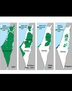 3. Înainte de formarea Statului Israel, în 1948, Cisiordania și Fâșia Gaza făceau parte din Palestina Mandatorie; „granițele” acestora sunt rezultatul expansiunii Israelului și al diverselor armistiții.
