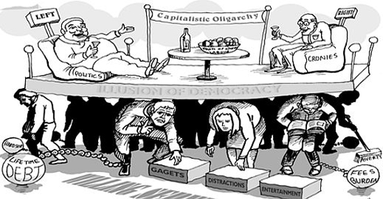 The phrase oligarchical collectivism is from George Orwell’s 1984 and is so descriptive that it accurately summarized every government in 1948 when it was first published, and every government since. It defines a society in which institutions such as government, media and corporate interests, which are controlled by a handful of individuals, link together, collaborating to direct, regulate and benefit from the activities of the many.