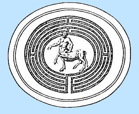 „Labirinturile simbolizau implicațiile și iluziile lumii inferioare prin care rătăcește sufletul omului în căutarea adevărului. În labirint locuiește omul animal inferior cu cap de taur, care caută să distrugă sufletul încurcat în labirintul ignoranței lumești. (….…) Celebrul labirint din Creta, în care hoinărea Minotaurul cu cap de taur, a fost fără îndoială un loc de inițiere în misterele cretane.” (Manly P. Hall, Învățături Secrete din Toate Timpurile)