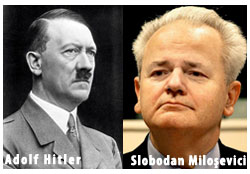 Tema „sârbi = nazişti” a fost energizată de nenumărate ori, câteodată cu o remarcabilă eleganţă profesională. Exemplu: două afişe. Pe unul se vedeau două fotografii, una a lui Adolf Hitler, cealaltă a lui Slobodan Miloşevici, cu următoarea întrebare dedesubt: „Discursurile despre purificarea etnică nu vă amintesc de nimic?” Celălalt afiş prezenta tot două fotografii, din două lagăre de concentrare: una data din al Doilea Război Mondial, cealaltă fusese făcută recent în Croaţia. Şi aici, tot o întrebare: „Un lagăr unde se purifică etniile nu vă aminteşte de nimic?