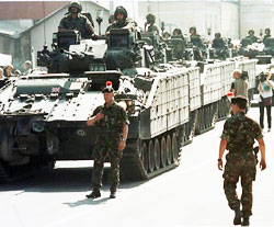Practic, reacţiile comunităţii internaţionale au fost din ce în ce mai brutale. Au început cu ameninţări la adresa sârbilor şi cu livrări de armament din partea Statelor Unite pentru musulmani, şi s-au terminat cu trei mii de misiuni ale avioanelor N.A.T.O. care au bombardat ţinte sârbeşti, militare şi civile, când niciuna dintre ţările membre N.A.T.O. nu era în război cu Serbia. Unii au fost acuzaţi de crime de război pentru mult mai puţin.