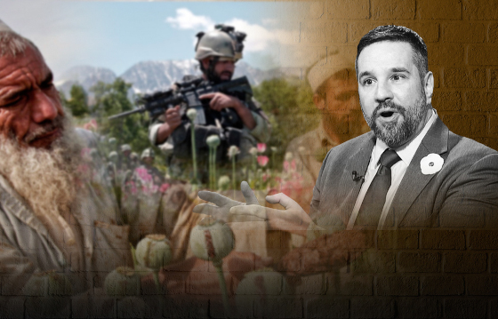 „Acest fapt subminează una dintre premisele fundamentale care s-au aflat la baza războaielor: presupusa asociere dintre talibani și comerțul cu droguri ‒ un concept al unei legături narco-teroriste. Totuși, această noțiune era falsă. Realitatea era că Afganistanul era responsabil pentru un procent uimitor de 80-90% din aprovizionarea ilicită cu opiacee din lume. Principalii controlori ai acestui comerț erau guvernul și armata afgană, entități pe care noi le-am menținut la putere.”