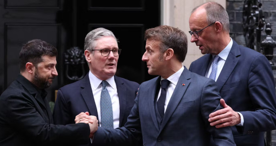 Președintele ucrainean Volodymyr Zelensky, prim-ministrul britanic Keir Starmer, președintele francez Emmanuel Macron și cancelarul german Friedrich Merz
