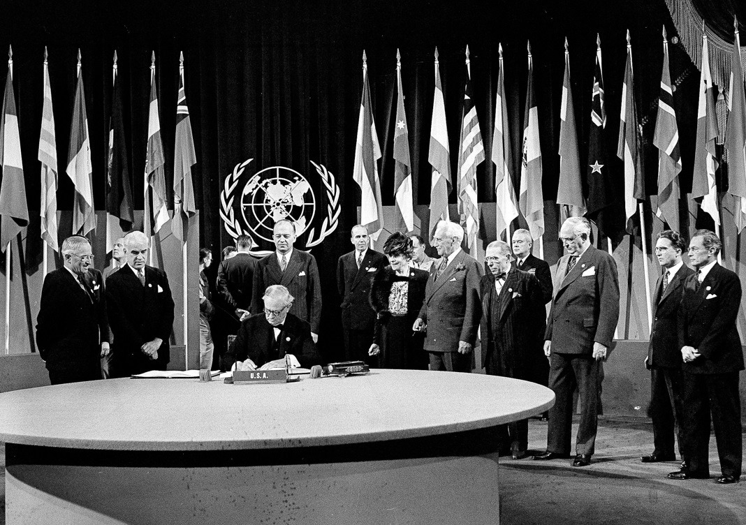 Este foarte posibil ca majoritatea celor 50 de state care au semnat Carta (statutul, constituția) Organizației Națiunilor Unite la Conferința de la San Francisco din 26 iunie 1945, intrată în vigoare la 24 octombrie 1945, să fi avut de fapt intenții bune. Cu toate acestea, nu cred asta despre SUA. Istoria dezvoltării SUA, încă de la înființarea sa, era deja plină de sânge de pe propriul său pământ (de fapt străin, indian) și fusese caracterizată drept imperialism încă din vremea Primului Război Mondial.