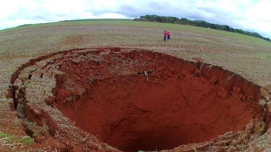 Les habitants de la petite ville de Coromandel, au Brésil, se sont réveillés avec un grand étonnement : un gigantesque sinkhole d’environ 20 mètres de large. Le gouffre est apparu au milieu d’une ferme de soja locale et sa profondeur n’a pas pu être déterminée par les habitants confus de la région.