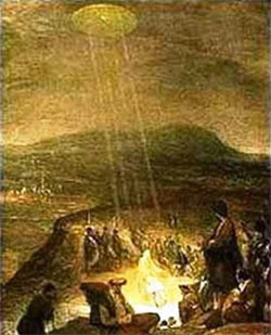 În orice caz, cu siguranţă nu sunt nori, care sunt în mod clar reprezentaţi, în picturile din apropiere, într-un mod complet diferit. De asemenea, ele nu pot fi stele sau Luna, pentru că, în aceeaşi frescă, se vede Soarele, ale cărui raze sunt vizibil reprezentate, pentru a atrage atenţia că scena are loc în plină zi. Cele două cercuri ar putea fi însă o reprezentare grafică, într-o manieră primitivă, a unui OZN în formă de disc, cu o cupolă bombată, pe care pictorul anonim, care nu ştia să reprezinte prea bine lucrurile într-o perspectivă tridimensională, le-a înfăţişat ca un cerc în interiorul altui cerc.
