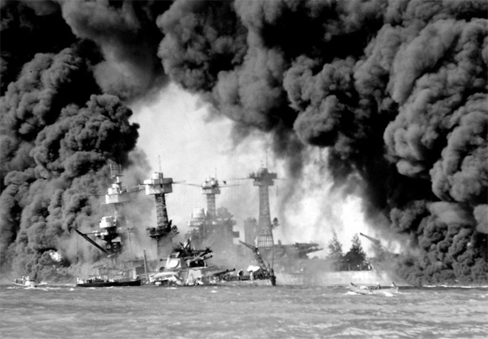 „În dimineața zilei de 7 decembrie 1941, mai exact la ora 7 și 48 de minute, Marina americană a fost atacată prin surprindere, din aer, de japonezi, la Pearl Harbor. Atacul a avut loc în două valuri succesive care au durat, în total, nu mai mult de o oră și jumătate. Însă au fost 90 de minute distrugătoare, în care peste 400 de avioane lansate de pe portavioanele japoneze au bombardat toată flota americană ancorată în Pearl Harbor. 18 vase au fost scufundate sau au eșuat, printre care 5 cuirasate. Aproape 2.400 de americani au murit iar alți peste 1.100 au fost răniți. Aproape jumătate dintre cei care au pierit au murit din cauza exploziei magaziei de praf de pușcă de pe USS Arizona, care a fost lovită de un obuz de calibru mare.