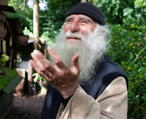 Când ne-am întâlnit azi, m-ați întrebat de ce am luat cufărul de teatru cu mine, aici, la coliba mea. Vă răspund acum. Am avut un spectacol care se numea „Mama și nebunul”. La un moment dat, e o scenă în care un om îmbrăcat ca un monah merge prin lume cu un cufăr după el. Când am înțeles că Dumnezeu are un plan și s-a folosit de teatrul meu pentru a-mi spune ce să fac, am decis să duc bicicleta înapoi și să-mi iau cufărul. M-am dus acasă, am luat cufărul și l-am târât după mine până în satul acesta, cerând iar găzduire aceleiași cunoștințe. Cufărul avea niște rotițe și mergeam cu el pe stradă, vorbind cu Dumnezeu: „Doamne, sunt pe stradă, Doamne!”. Arătam ca un nebun. Toți mă priveau pe geam cu uimire, să vadă ce fac. Și am înțeles deodată că, pentru cine mă vedea, eu eram „nebunul” ‒ de data asta însă nu nebunul din piesă, ci nebunul din realitate! Și, în timp ce făceam aceasta, în mine era pace. Îl simțeam pe Dumnezeu. El era cu mine, așa că am zis: „Bine, Doamne, voi face orice-mi vei spune!”. Apoi, am încercat să aflu ce am de făcut cu acel cufăr. Mi-am zis: „Personajul din piesa mea merge prin lume cu cufărul, așa că o să fac și eu la fel. O să pun o cruce mare pe cufăr, o să-mi fie ca o bisericuță, și o să merg prin lume cu bisericuța după mine, devenind nebun pentru Hristos. Dorm în cufăr sau văd eu ce fac.”