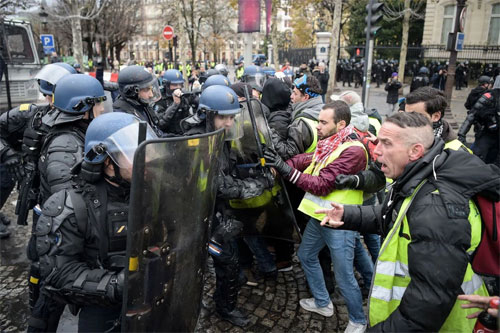 Degringolada prezentă pe străzile Parisului la finele anului trecut părea că depăşeşte capacitatea autorităţilor de a gestiona situaţia apărută: respectul faţă de forţele menite să apere ordinea de drept în republică dispăruse, iar Vestele galbene, sub impresia, la cald, de apartenenţă la un grup, prinseseră gustul galeriilor de fotbal, de a se lua la trântă cu orice jandarm întâlnit în cale.