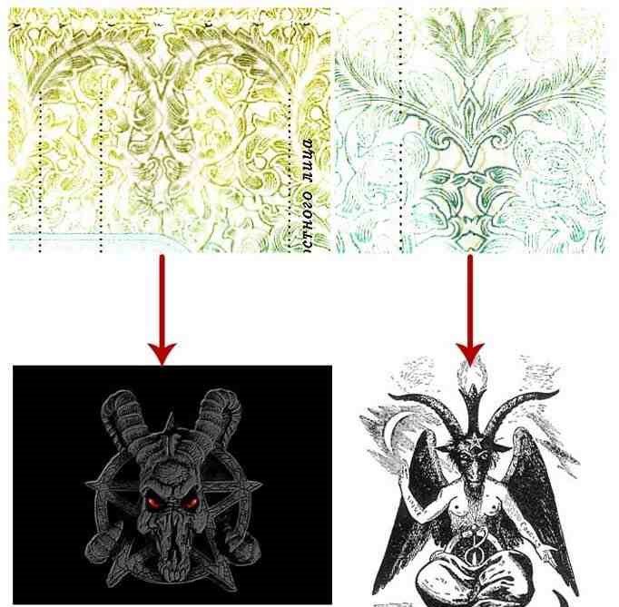 Ornamentele desenate pe paginile pașapoartelor sunt prezente, oficial, pentru a împiedica sau a face extrem de dificilă falsificarea acestor documente. Totuși, în cazul unor țări, la o privire atentă se observă că acestea descriu simboluri satanice ascunse. Este naiv să credem că, datorită multitudinii de posibilități de a crea un desen ornamental, alegerea acestor modele stranii este rodul hazardului. Ele reprezintă mai degrabă o semnătură insolentă a cercurilor oculte de putere malefică ce influențează din umbră și vor să controleze în totalitate destinele omenirii.