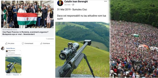 Avem prima dată știrea de presă (conservatoare) că papa Francisc ar dori să viziteze Şumuleu Ciuc, unde, anual, are loc un pelerinaj. Ca și cum la pelerinaj ar participa – de regulă – exclusiv români, iar acum li s-ar refuza asta, ziarul informează că „Budapesta” vrea să transforme evenimentul într-unul unguresc. Bifând caracterul „patriotic”. Păi „Budapesta” nu trebuie să transforme nimic! La limită, chiar este un eveniment unguresc, deși în principal este catolic. Începând cu 1567 are loc exact aici și exact de Rusalii. Acest pelerinaj amintește de victoria secuilor (catolici) asupra principelui János Zsigmond (protestant), care ar fi dorit ca și secuii să treacă la noua religie. Dar n-o să găsiți asta în cărțile de istorie! Ca atare, „patriotul” Berenghi, care a servit în Légion Étrangère, își prezintă arma cu lunetă îndreptată în direcția în care se desfășoară pelerinajul religios. Pentru că, nu-i așa, ăia sunt bozgori… Cam acesta este naționalismul românesc.