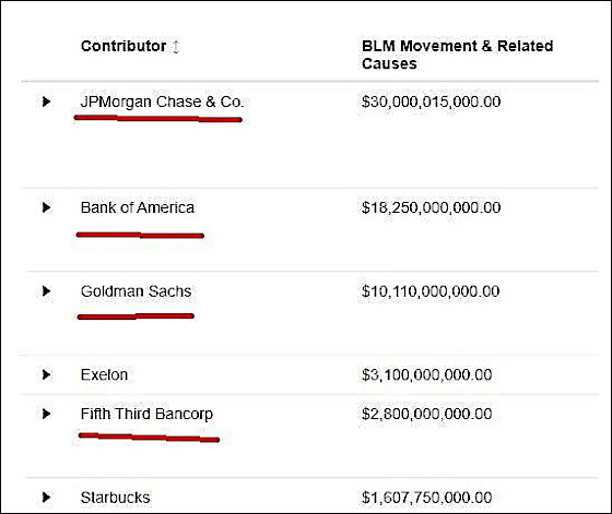 La scurt timp, a fost dezvăluit faptul că corporațiile americane au acordat peste 80 de miliarde de dolari pentru BLM, potrivit unui raport de la Breitbart și Institutul Claremont.