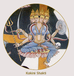 Kakini Shakti ține în cele patru mâini ale sale obiectele care simbolizează cele patru modalităţi specifice care ajută la dobândirea unei stări de echilibru intern profund și armonie cu lumea exterioară: