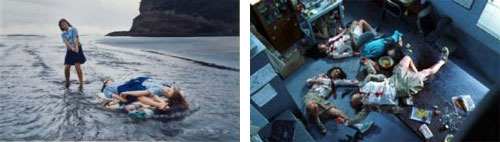 Une photo dans sa collection rappelle le film d’une violence inouïe sur des ados, Battle Royale (à droite). « Battle Royale » est un film japonais dans lequel une classe de 3ème tirée au sort, est kidnappée dans une île retirée, et contrainte à s’entretuer jusqu’au dernier. Le film (en plus vicieux) fait référence au film des années 30 : « Les chasses du comte Zaroff » qui décrivait des chasses à l’homme sur l’île d’un aristocrate russe (propagande oblige)… et préfigure les « Hunger Games » bien plus édulcorés (quoiqu’on y tue une petite fille quand même !).