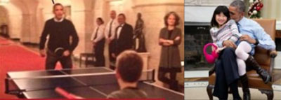 Hormis le fait que la pizzeria ait été le siège de parties privées pour aider Obama à assembler des fonds, et qu’Alefantis ait été le petit ami de David Brock, qui a aidé à l’ascension politique d’Hillary et fait taire toute rumeur autour du Pizzagate grâce à son influence sur les médias de masse, ça n’explique pas qu’il ait été reçu au moins cinq fois à la Maison Blanche, dont une étrangement en même temps que Laura Silsby (mentionnée plus haut). On peut d’ailleurs trouver sur le compte Reddit d’Alefantis cette photo plutôt cryptique d’Obama, jouant au ping-pong avec un enfant à la Maison Blanche :