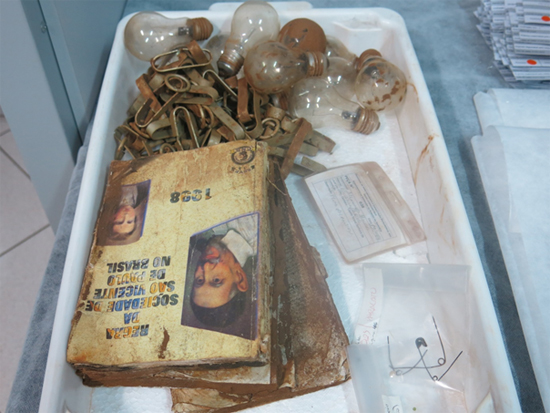 À Mariana, les responsables de la fondation font fièrement visiter le bâtiment construit tout spécialement pour conserver les objets religieux et pièces de mobiliers des églises des villages détruits qui ont pu être extirpés de la boue. Cette même entreprise qui n’avait pas mis en place de système d’alerte pour les villages menacés par les barrages finance aujourd’hui une équipe de restaurateurs professionnels pour récupérer les statuettes, les livres de prières, les chasubles, les menuiseries ou les autels des églises disparues dans les boues toxiques.