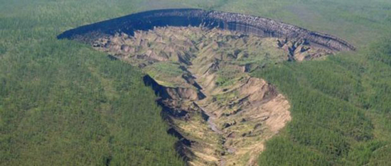 Uriașul crater Batagaica a fost supranumit de localnici „Poarta către iad”. El se află la 660 km nord-est de capitala Yakutsk a regiunii Sakha din estul Rusiei și s-a format în anii ’60.