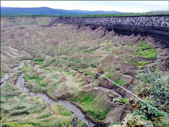 Prăbușirea din această zonă are însă și o parte bună: a scos la lumină resturi de animale și plante care trăiau aici acum 200.000 de ani, o comoară pentru cercetători. Partea rea are legătură cu o posibilă eliberare masivă de bioxid de carbon, gaz format în adâncurile permafrostului timp de sute de mii de ani. Amenințarea vine din faptul că, potrivit specialiștilor, bioxidul de carbon din permafrost este evaluat ca fiind la fel de mult ca cel prezent în toată atmosfera terestră.
