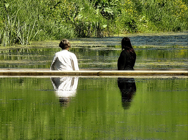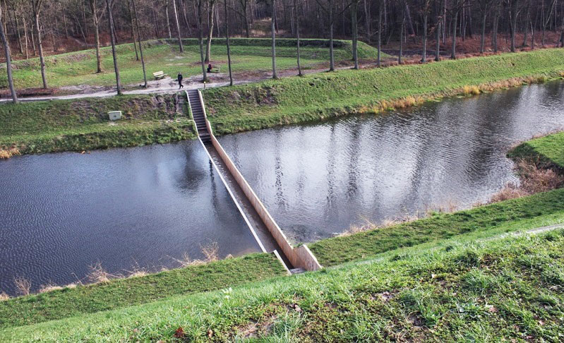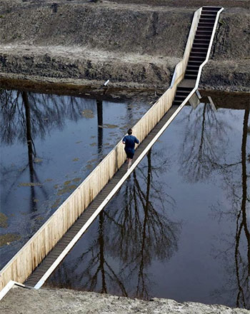 Desigur, în acest caz vorbim doar de o iluzie optică; apele nu sunt despărțite de Divinitate, ci de un pod aproape invizibil din unghiul potrivit, proiectat de casele de arhitectură Ro Koster and Ad Kil Architects, în satul Halsteren din sudul Olandei. Podul „scufundat” este realizat din lemn impermeabil și străbate canalul care înconjoară Fortul Roovere, construit în secolul al XVI-lea.