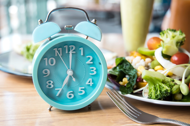 Studiile comparative au arătat și cât este de importantă corelarea intervalului în care mâncăm cu ritmul circadian[4]. Spre exemplu, limitarea ferestrei de alimentație până la prânz îmbunătățește glicemia postprandială și răspunsul celulelor β-pancreatice, în timp ce alimentația numai seara târziu nu are niciun efect sau chiar înrăutățește profilul glicemic. Sunt necesare câteva ore de repaus alimentar înainte de culcare, pentru ca digestia și procesarea nutrienților să se facă în mod optim.