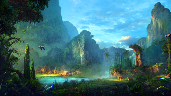 În unele locuri, văile se întindeau departe în zare, pe numeroase mile în fiecare direcţie. „Dumnezeu învăluit în fum”, cu lumina sa albă clară, privea calm în jos. Era o condensare în aerul electric supraîncărcat care mângâia obrajii la fel de dulce ca o şoaptă trecătoare. Natura cânta parcă un cântec de leagăn în murmurul uşor al vântului al cărui suflu era înmiresmat de parfumul mugurilor şi al florilor.
