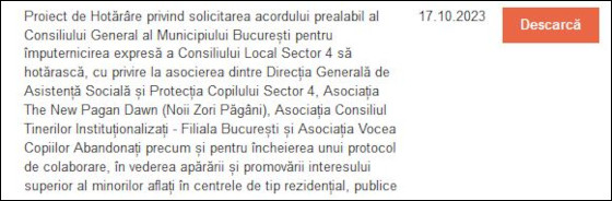Primăria Sectorului 4, condusă de Daniel Băluță (PSD), a inițiat o hotărâre prin care dorește asocierea dintre Direcția Generală de Asistență Socială și Protecția Copilului Sector 4 și Asociația „The New Pagan Dawn” (Noii Zori Păgâni) și alte două ONG-uri, „în vederea apărării și promovării interesului superior al minorilor aflați în centrele de tip rezidențial, publice”, semnalează R3media.