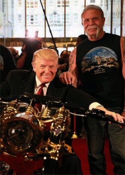 Doar ce m-am întâlnit cu oficiali și muncitori de la o mare companie americană, Harley-Davidson. De fapt, ei au expus cu mândrie cinci dintre magnificele lor motociclete, fabricate în SUA, pe peluza din fața Casei Albe. Și au dorit ca eu să merg cu una dintre ele, iar eu am spus «Nu, mulțumesc!». La întâlnirea noastră, i-am întrebat «Ce faceți, cum vă merge afacerea?». Ei au spus că este bine. I-am întrebat apoi «Ce faceți cu celelalte țări, în special cu vânzările internaționale?». Ei mi-au spus, fără măcar să se plângă pentru că au fost atât de prost tratați atâta timp, că s-au obișnuit cu acest lucru, că este foarte greu să facă afaceri cu alte țări pentru că taxează produsele noastre la o rată atât de mare. Au spus că în cazul unei alte țări, le taxează motocicletele cu o rată de 100%. Ei nici măcar nu au cerut o schimbare, dar o fac eu.