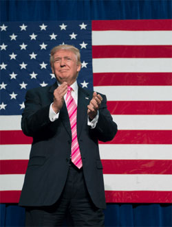 Dar, pentru a împlini obiectivele noastre, acasă și în străinătate, trebuie să repornim motorul economiei americane, făcând să fie mai ușor pentru companii să desfășoare afaceri în Statele Unite, și mult, mult mai dificil pentru companii să părăsească țara noastră! În acest moment, companiile americane sunt taxate la una dintre cele mai înalte rate oriunde în lume. Echipa mea economică dezvoltă o reformă fiscală istorică ce va reduce rata de taxare pentru companiile noastre, astfel încât să poată concura și avea succes oriunde și cu oricine! Va fi o mare, mare reducere!