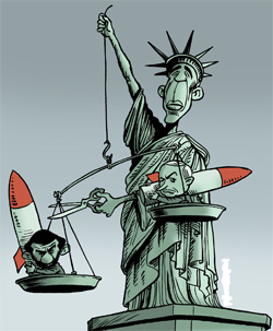 Totuşi, Barack Obama a fost mai degrabă preocupat de alegerile prezidenţiale şi a preferat să nu se implice într-o nouă aventură militară. Ca dovadă a faptului că potentaţii din administraţia SUA încă aşteaptă un moment favorabil pentru războiul cu Iranul, recent a fost redusă anvergura unui exerciţiu militar programat să se desfăşoare împreună cu Israelul. Pe de o parte, în niciunul dintre discursurile oficialilor din Statelor Unite sau Israel despre programul nuclear iranian nu se afirmă existenţa unor dovezi că acest program ar fi altfel decât paşnic. Pe de altă parte, chiar dacă programul nuclear iranian ar avea scopuri militare, nici Israelul şi nici Statele Unite nu au autoritatea morală de a-l critica, date fiind acţiunile militare agresive ale celor două state.