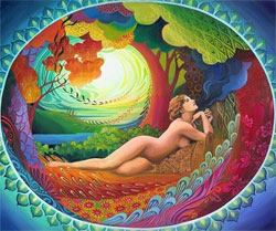 Artistul, care are bucuria unei idei artistice depline, o exteriorizează dându-i o formă şi astfel ideea devine şi mai mult proprietatea lui. E bucuria care despică o parte din noi înşine şi îi dă formă şi graţie iubirii ca să ne regăsim întregi în ea. De aceea această despicare nu-şi are pricina în nepăsare, ci în iubire. Lepădarea are în sine numai un moment, acela al despicării. Dar iubirea are două: momentul despicării, care e numai aparent şi momentul unificării, care e adevărata ei fiinţă. Trebuie astfel să ştim că înţelesul eu-lui nostru nu se poate afla în izolarea de DUMNEZEU şi de semeni, ci în necontenita realizare a YOGA-ei, adică în unificare, să nu căutăm acest înţeles în dosul gol al pânzei, ci pe faţa unde e zugrăvită icoana.