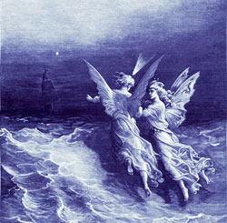 Mi-a fost povestită într-un mic oraş din Bretagne, pe un prundiş cu pietrişul auriu, în faţa crepusculului, în timp ce soarele avea înfăţişarea unui rege magnific care primea, la ceremonia culcării, o întreagă curte de nori eleganţi, îmbrăcaţi în trandafiriu, într-un castel oarecare din văzduh.