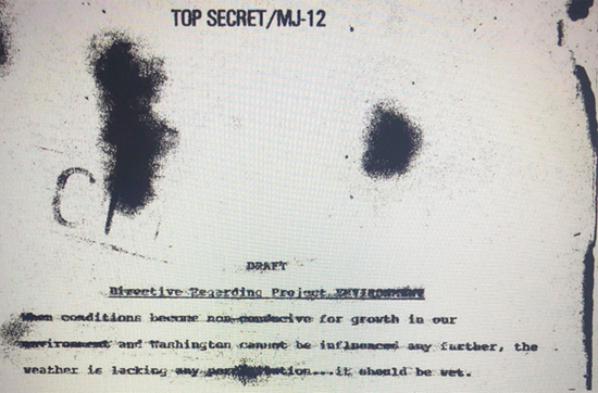 Plus précisément, il y a un mémorandum contenant un ensemble de huit directives politiques rédigées par Dulles au nom d’un mystérieux comité appelé Majestic 12 (MJ-12) chargé des programmes aérospatiaux avancés. L’une des huit directives, Project Environment, donnait une autorisation cryptique pour l’assassinat de tout fonctionnaire qui menaçait les opérations de Majestic 12.