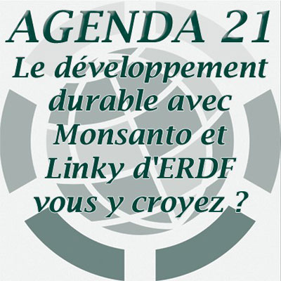 L’Agenda 21 / Développement durable sont des termes inventés par David Rockefeller dans les années 90. L’argument majeur de l’agenda 21 des Rockefeller : « Pourvoir aux besoins du présent sans compromettre les besoins des générations futures. » Derrière la façade écologique, c’est en réalité une feuille de route pour contrôler toutes les ressources planétaires via des monopoles transnationaux.