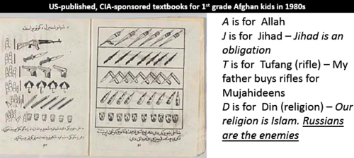 Take a look at Afghanistan in the 1980s. The US, expanding the Empire on behalf of the NWO, was working on containment of Russia. They recruited Afghanis and turned them against the then Soviet Union by using religion as a weapon – where the narrative was holy righteous Islam against the Godless communist USSR. These fighters became the Mujahedeen – a proxy US army – and the whole Afghani-Russia war served as a template for how the US could use radical Islamic terrorists to achieve its geopolitical goals.