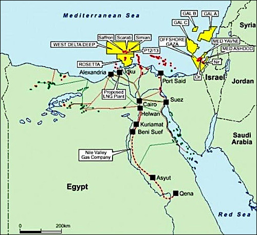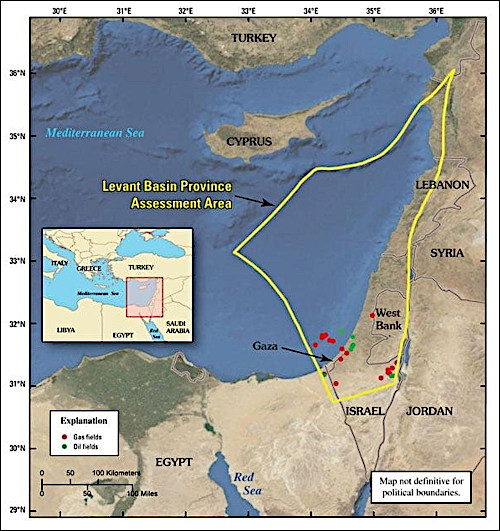 Este necesar să fie remarcat faptul că întreaga coastă estică a Mediteranei, care se întinde de la Sinaiul Egiptului până în Siria, constituie o zonă care cuprinde mari rezerve de gaze și petrol.