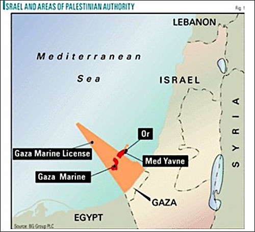 Invazia militară din decembrie 2008 a Fâșiei Gaza de către forțele israeliene are o legătură directă cu controlul și proprietatea asupra rezervelor strategice de gaze offshore. Acesta este un război de cucerire. Descoperite în 2000, există rezerve extinse de gaze în largul coastei Gazei.