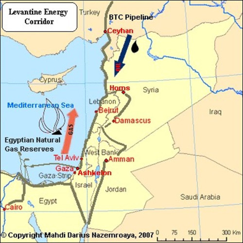 [3] Ceyhan este terminalul conductei transcaspice Baku, Tblisi Ceyhan. „Ceea ce se are în vedere este legarea conductei BTC de conducta Trans-Israel Eilat-Ashkelon, cunoscută și sub numele de Tipline a Israelului”. (Vezi Michel Chossudovsky, Războiul împotriva Libanului și bătălia pentru petrol, Global Research, 23 iulie 2006 și https://www.globalresearch.ca/war-and-natural-gas-the-israeli-invasion-and-gaza-s-offshore-gas-fields/11680 – 8 ianuarie 2009.