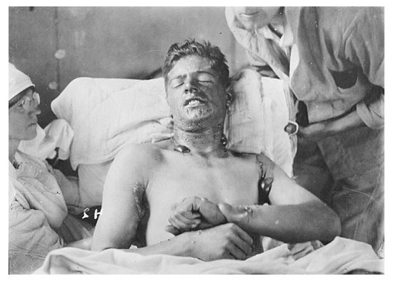 În Primul Război Mondial, soldaţii erau expuşi pentru prima dată (la o asemenea scară) la substanţe extrem de toxice, precum iperita, numită în engleză şi mustard gas, o substanţă pe bază de sulf şi clor care persistă mai multe zile, cu efecte extrem de nocive asupra pielii, ochilor şi respiraţiei. În timpul acestui război, peste un milion de soldaţi au fost expuşi şi 100.000 au murit din cauza gazelor.