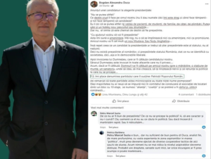 Celui din ipostaza de mai jos, admirator de Harari și Boia, îi repugnă nepricepuții în „politică”, deși îi sunt dragi (!), el îi preferă pe alde Mihail Neamțu (teolog de geamlâc de toaletă ‒ oberlicht theologe) ori Teodor Baconschi (teologul de jacuzzi, pupător de băs, precum și eroul nostru fu pupător de moisești și chilimani), că ăștia au experiență și au știința politichiei. Ăștia, da, dom’le, profesioniști, nu diletanți!