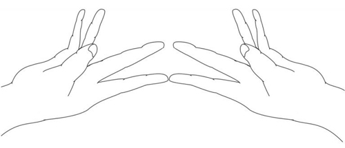 To practice, bend your ring fingers inwards. Place the tip of your thumbs on the outside edge of the middle joints of your ring fingers. Relax and extend your index, middle, and little fingers. Practice two times a day for thirty minutes in total.