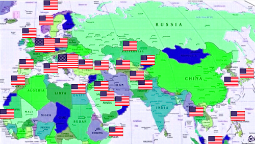 Definitorie pentru tipul de politici agresive practicat de SUA este relația cu Rusia. Aflăm deci că, în întreaga perioadă postbelică, Statele Unite n-au avut altă grijă decât să înconjoare Uniunea Sovietică, prin NATO, cu o centură de baze militare dotate cu bombe nucleare şi avioane care să le transporte la ţintă. Nici căderea comunismului şi angajarea Rusiei pe calea democraţiei nu i-a potolit şi au extins NATO până la graniţele ruseşti, în pofida promisiunii verbale a lui Bush faţă de Gorbaciov că ,,nu vom avansa nici măcar un centimetru“. Ceea ce a obligat Rusia să-şi reia programul de înarmare intensivă la care intenţionase să renunţe şi a readus pericolul distrugerii nucleare a planetei la acelaşi nivel cu cel al încălzirii globale. Mai nou, de când a prins să ridice capul, un tratament similar este aplicat şi Chinei, la ale cărei graniţe maritime foiesc portavioane şi crucişătoare dotate cu rachete de croazieră.