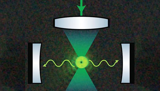 Une nanoparticule dans une pince optique disperse une infime partie de la lumière de la pince dans presque toutes les directions. Si la particule est positionnée à l’intérieur d’une cavité optique, une partie de la lumière diffusée peut être stockée entre ses miroirs. En conséquence, les photons sont préférentiellement diffusés dans la cavité optique. Cependant, cela n’est possible que pour la lumière de couleurs spécifiques, ou autrement dit pour les énergies de photons spécifiques.