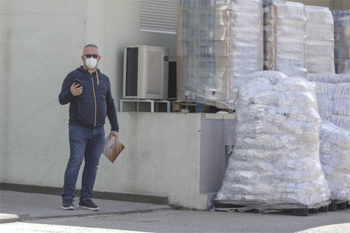 Adrian Ionel, fostul șef Unifarm, în aprilie 2020 – lângă un lot de marfă din curtea companiei