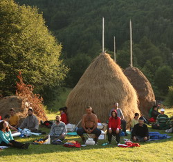 „Vreau să vă spun că în fiecare an când plec de la tabără plec atât de încărcată, cu un sentiment de prea plin. Când se mai anunţă o tabără, pe care o aştept de altfel, mă gândesc „Oare ce-o să mai fie în tabăra asta, mai e ceva de spus după tot ce a fost anul trecut?” Şi în fiecare an e din ce în ce mai înalt. Cât de variată este natura, cât de multe plante există! Simt că aceste plante împreună cu muzica ne-au curăţat permanent, din centru în centru. La meditaţiile pe Anahata am simţit că mă topesc, aseară am fost copleşită şi n-am mai putut vorbi. Este ceva care împlineşte totul. Grieg nu ne vrea călduţi, Grieg ne vrea fierbinţi, Grieg vrea să ardem. Am simţit că fiecare tobă din aceea bate toba în centrii mei de forţă. Şi recunosc muzica lui Grieg din toate muzicile pe care le ascult eu. Când începe toba înseamnă treziţi-vă, ce mai aşteptaţi, meditaţi, lucraţi spre binele altora, pregătiţi-vă, uniţi-vă. Şi am simţit acea alchimizare foarte puternică – plantele sunt excepţionale. Mi-am dat seama acum că tot ce a fost aici depăşeşte orice congres profesional despre plante. Prin profesia mea am mai fost la nişte congrese şi în ţară şi în străinătate. Am văzut multe postere, lucrări care au şi ele în spate mult timp de lucru şi le apreciez rezultatele. Dar era ceva static, mort, doar pentru zilele acelea, plecam după aceea fiecare la treaba noastră. Ceea ce se petrece în această tabără este ceva viu, care face parte din interior, din suflet şi din viaţă, din timp, din Tot. Este mâna lui Grieg”. (Ioana)